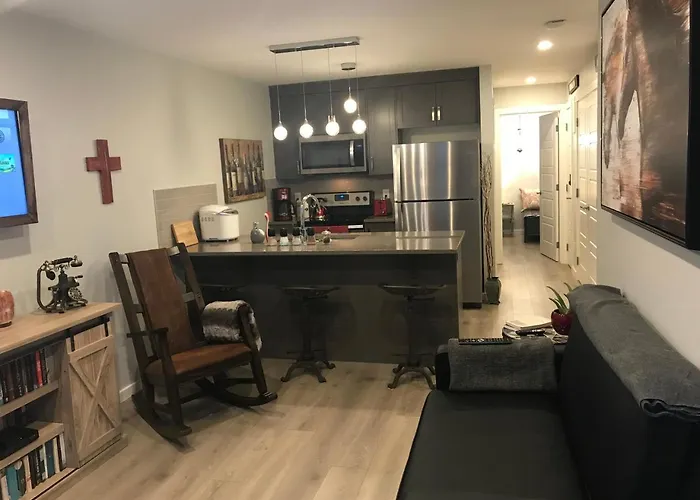 Home Sweet Condo Calgary comprend une terrasse et est situé à moins de 4 km du Lac Sikome Aquatic Facility. Le domicile de 56 m^2 propose également un Wi-Fi et un parking.